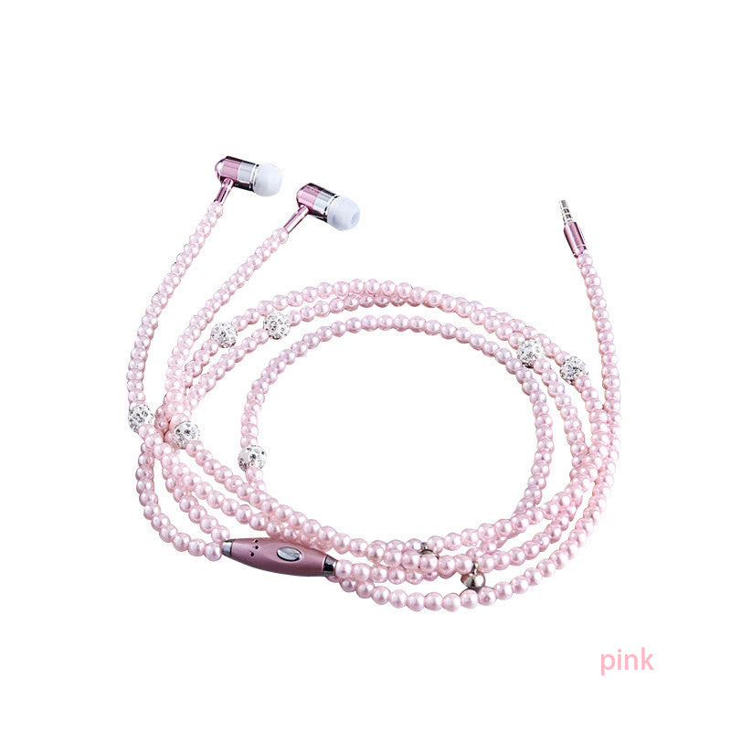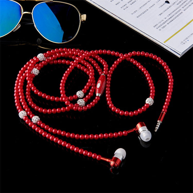 Rhinestone Necklace Earphones: Rhinestone Pearl Earphones